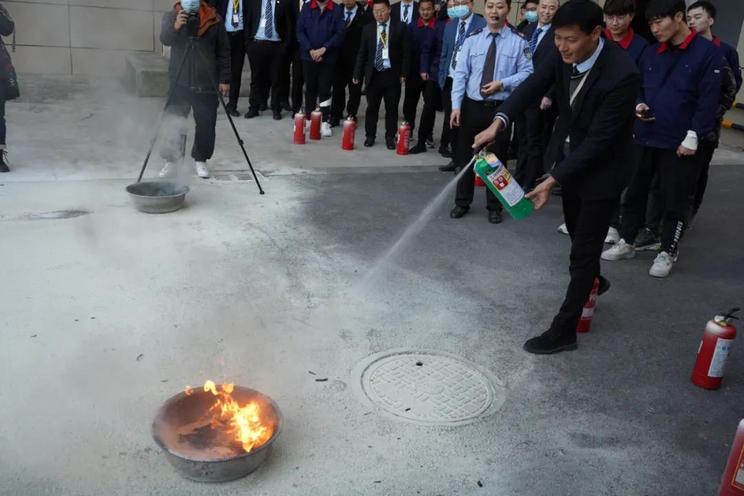 培訓現場,陳主任重點向參訓者講解了滅火器的分類、使用要點以及注意事項,手把手指導大家如何使用滅火器。參訓人員根據講解,準確無誤地完成了干粉滅火器和水基滅火器的滅火演練。
