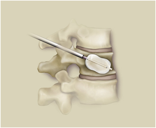 向空腔中注入骨水泥。椎體高度恢復,強度恢復。